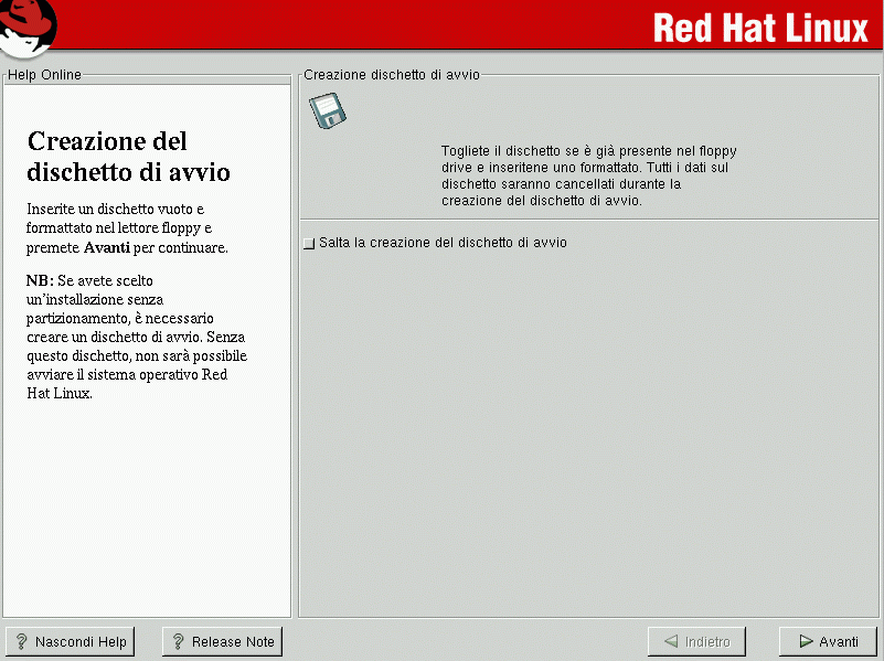 | Indietro | Capitolo 4. Installazione di Red Hat Linux | Avanti |