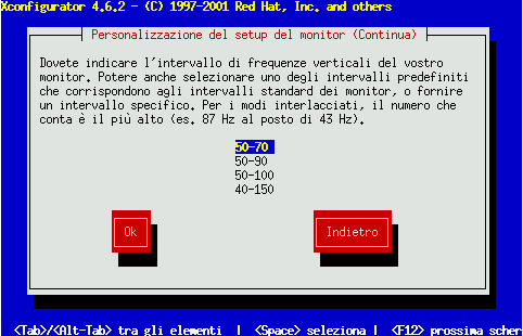 Se selezionate Custom, Xconfigurator vi richiede di selezionare i range di frequenze orizzontali e verticali (questi valori di solito sono disponibili nella documentazione del monitor).