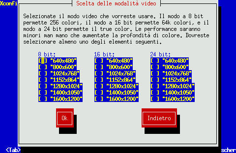 L'utility Xconfigurator offre la possibilità di configurare il server X per il vostro sistema.