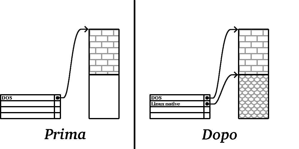 Abbiamo etichettato questa partizione come se fosse di tipo "DOS", anche se come potete vedere dalla Tabella B-1, questo è un pò semplicistico, ma adeguato allo scopo di questa discussione. Si tratta di una tipica configurazione di partizioni della maggior parte dei computer acquistati con una versione di Windows pre-installata.