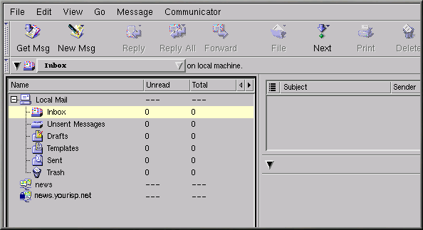 Nachdem Sie Ihre Accounts in Communicator konfiguriert haben, können Sie mit Nachricht E-Mails und Beiträge in Newsgroups senden und empfangen (weitere Informationen zum Einrichten der Newsgroup-Einstellungen finden Sie in Abschnitt namens Verwenden von Messenger für das Lesen von News).