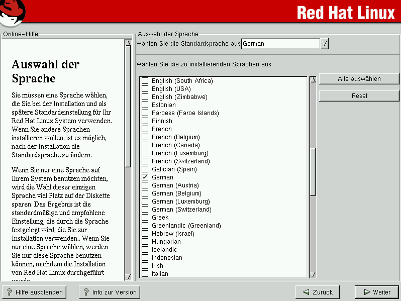 Red Hat Linux kann mehrere Sprachen für Ihr System installieren und unterstützen.