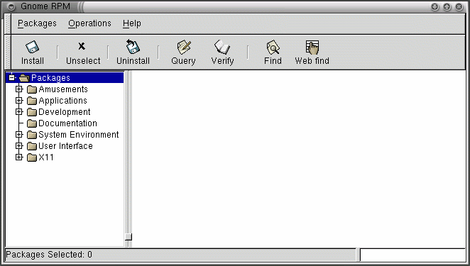 Open Gnome-RPM (From a GNOME desktop, go to Main Menu => System => GnoRPM; In KDE, go to Main Menu => Programs => System => GnoRPM.