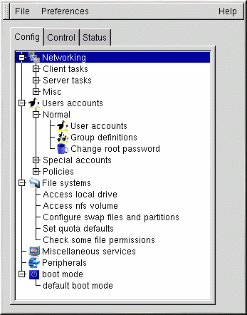 1. Abra Control => Control files and systems => Configure Linuxconf modules.