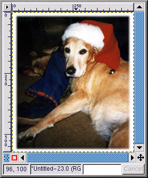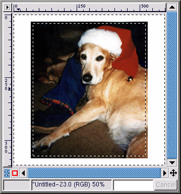 Il faut avant tout mettre l'image à échelle. Cliquez avec le bouton droit sur l'image, puis cliquez sur Image => Scale Image afin d'afficher la boîte de dialogue Scale Image. L'image a été réduite à un Ratio de 0,85, parce qu'elle était un peut trop grande pour l'effet souhaité.