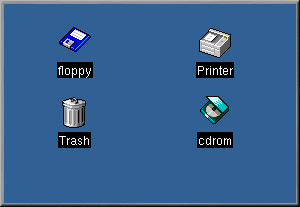 Les icônes floppy et cdrom sont des raccourcis vous permettant d'accéder à vos lecteurs de disquette ou de CD-ROM en cliquant dessus avec le bouton gauche de votre souris.