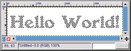 Adesso all'immagine deve essere aggiunto il testo "effettivo". Innanzitutto il colore attivo in primo piano va modificato. In questo caso, viene scelto un rosso sfumato (RGB 204 051 051). Quindi con il tool di testo attivo fate clic sull'immagine. Compare la finestra di dialogo Text Tool. Assicuratevi di aver selezionato le stesse configurazioni. Fate clic su OK per aggiungere la scritta "Hello World!" rossa all'immagine e quindi spostatela nella posizione corretta.