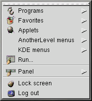 Da qui, potete avviare tutte le applicazioni incluse e le applet di GNOME. Potete anche accedere alle applicazioni KDE contenute nei menu KDE (se KDE è installato sul sistema).