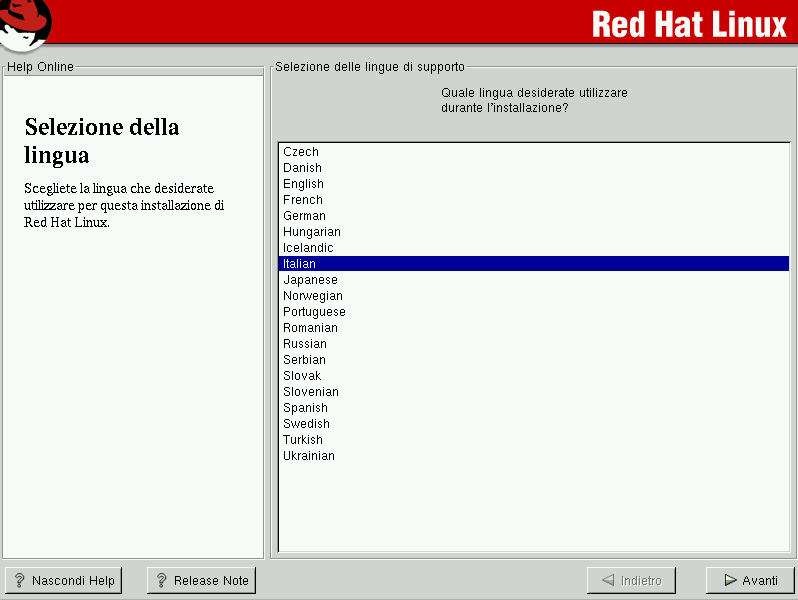 | Indietro | Capitolo 4. Installazione di Red Hat Linux | Avanti |