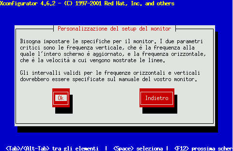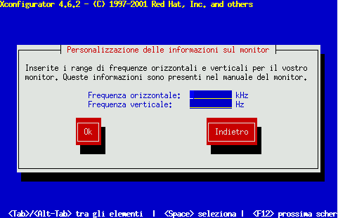 Se selezionate Custom, Xconfigurator vi richiede di selezionare i range di frequenze orizzontali e verticali (questi valori di solito sono disponibili nella documentazione del monitor).