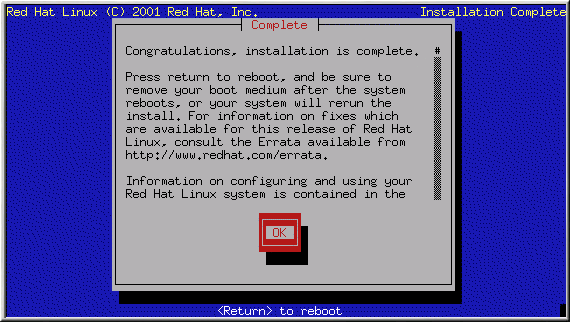 Your Red Hat Linux 7.1 installation is almost complete.