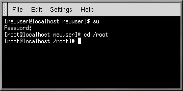 [newuser@localhost newuser]$ su
