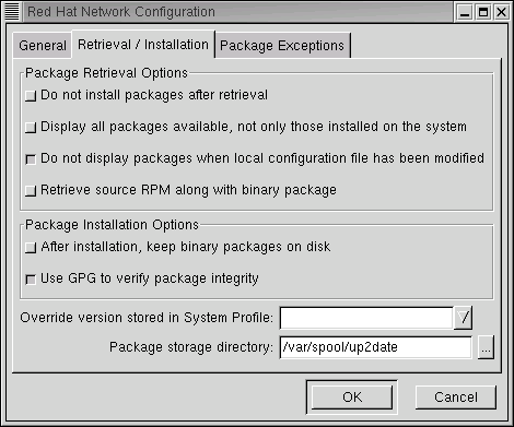 Abbildung 12-3 Red Hat Network Configuration Tool Retrieval/Installation Tab