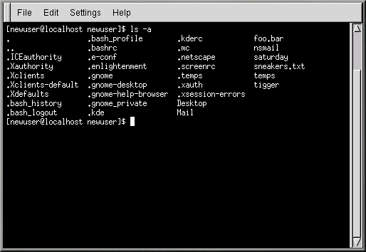 Digitate ls -a. Vedrete che alcuni file iniziano con dei punti. Questi file si chiamano file nascosti o file dot.
