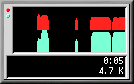 Während Sie mit dem Internet verbunden sind, zeigt der RP3-Monitor in zwei Diagrammen die Übertragungsraten für Ihre Verbindung an. Dabei können Sie dem oberen Diagramm die übertragene Datenmenge und dem unterem Diagramm die empfangene Datenmenge entnehmen (siehe Abbildung 6-10).