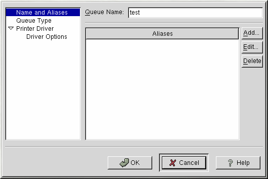 Um einen lokalen Drucker, wie zum Beispiel einen, der über einen parallelen oder USB-Port an Ihrem Computer angeschlossen ist, hinzuzufügen, klicken Sie im Hauptfenster von printconf auf den Button Add. Das in Abbildung 13-2 gezeigte Fenster erscheint.