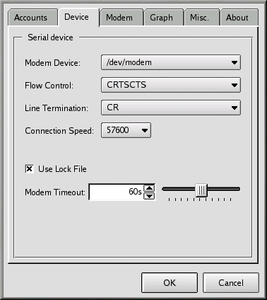 Standardmäßig ist das Kontrollkästchen Use Lock File aktiviert. Dadurch sperrt Kppp das Gerät, wenn Sie gerade online sind und verhindert dadurch, dass andere Programme ebenfalls auf das Modem zugreifen.