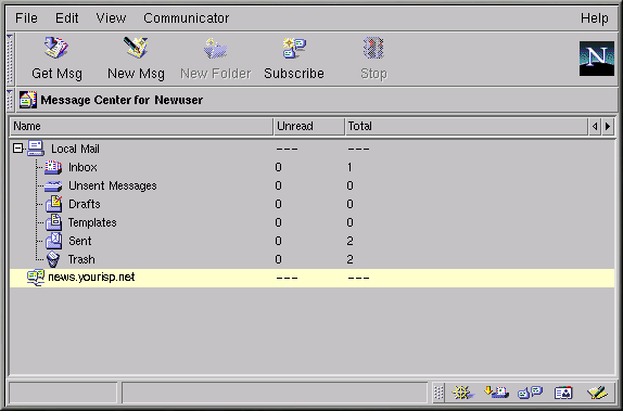 La ventana Correo Netscape & Grupos de noticias que se abrirá será será similar al Figura 7-18.