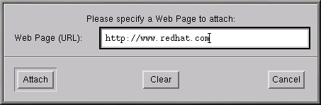 You can drag files from your desktop or from your file manager in the same way that you can drag URLs from Navigator. Just hold your mouse button over the file you want to attach, and drag it to the attachments field of your letter. |