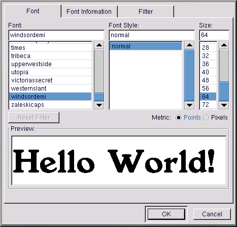 ダイアログボックスの下部にある[プレビュー]フィールドに、Webページのタイトルを入力します。ダイアログボックスのプルダウンメニューから、[フォント]、[フォントスタイル]、[サイズ]を好みに応じて選択します。入力したテキストのプレビューは、Figure 9-25に示したように変化します。