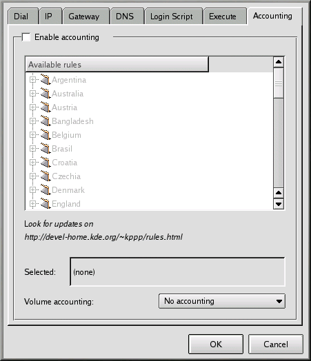 ISPによる請求が、月額固定ではなく、オンライン時に転送されたデータ量にかかる場合、アカウンティングは便利なツールです。ボリュームアカウンティングと呼ばれるこのツールは、ユーザーのマシンがインターネット経由で送受信したバイト数を計算します。