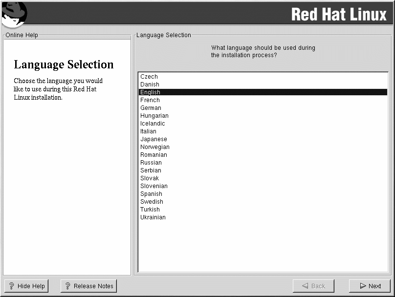 インストール中に使用しシステムのデフォルトとして設定する言語をマウスで選択してください。 (図4-1を参照)