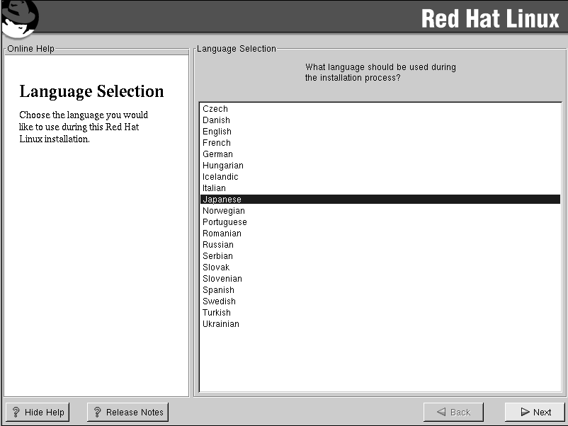 インストール中に使用し、システムのデフォルトとする言語を、マウスで選択してください(Figure 4-1を参照)。