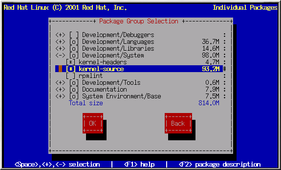 After selecting the components you wish to install, you can select or deselect individual packages. You can select or deselect packages using [Space] (see Figure 3-17).