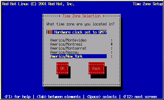 If you wish to set the hardware (CMOS) clock to GMT (Greenwich Mean Time, also known as UTC, or Universal Coordinated Time), select Hardware clock set to GMT. Setting it to GMT means your system will properly handle daylight-saving time, if your time zone uses it.