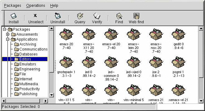 You can install, upgrade, or uninstall several packages with a few button clicks. Similarly, you can query and verify more than one package at a time. Since Gnome-RPM is integrated with GNOME, you can also perform installation, query and verification on packages from within the GNOME File Manager.