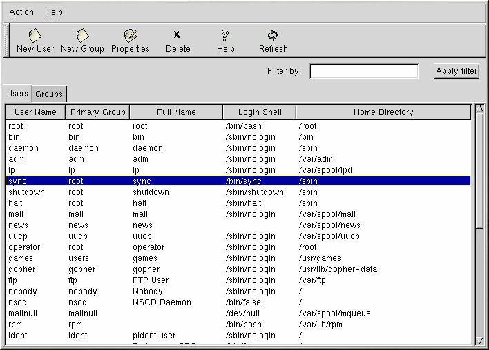 For more information on users and groups, refer to the Official Red Hat Linux Reference Guide.