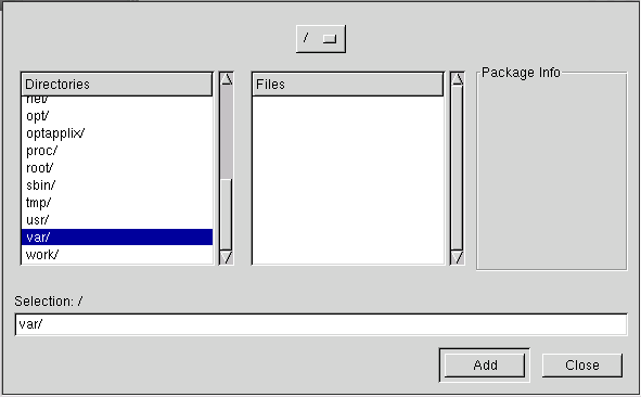 4. Under Directories, scroll down and double-click on /var. This will display a new list of directories in the Directories box.