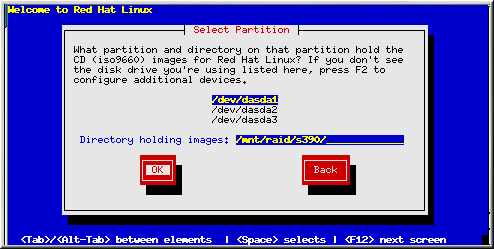The Select Partition screen (Figure 3-3) applies only if you are installing from a disk partition (that is, if you selected Hard Drive in the Installation Method dialog). This dialog allows you to name the disk partition and directory from which you are installing Red Hat Linux.