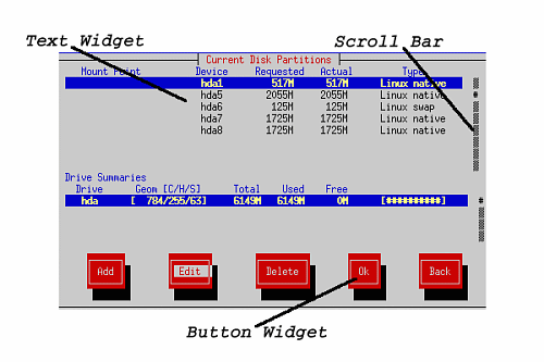 Figure 3-2. Installation Program Widgets as seen in Disk Druid