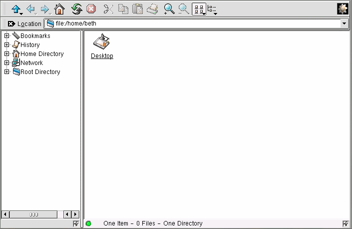 If you have used a Web browser or file manager before, you will find that moving around with Konquerer seems familiar. You can type the path location of a file (and the address of a website or FTP site) in the Location bar. Above the Location bar, icons on the Navigation bar help you quickly move to other directories. Briefly, here is a description of some of the icons: