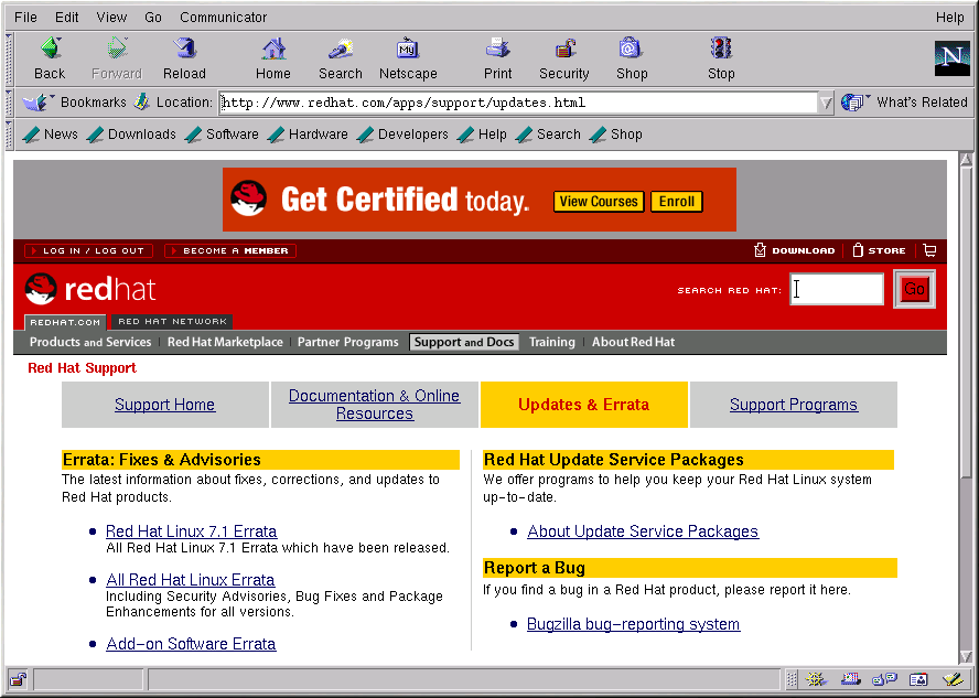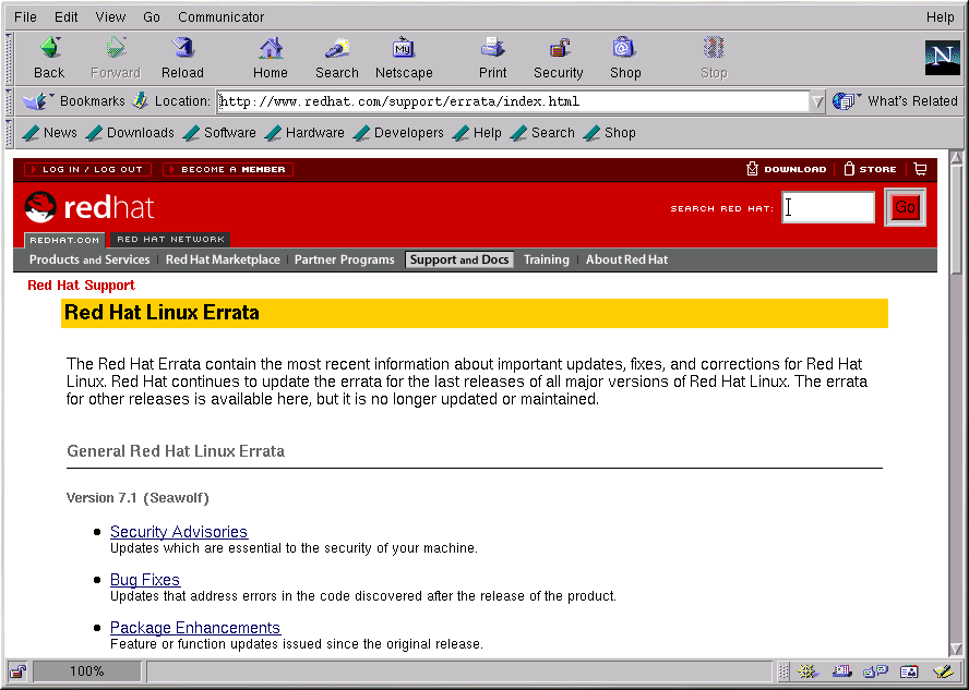 You can then follow the instructions under Solution on the errata page to upgrade RPMs, or upgrade using the RPM application. See the Official Red Hat Linux Customization Guide for more information on RPM.
