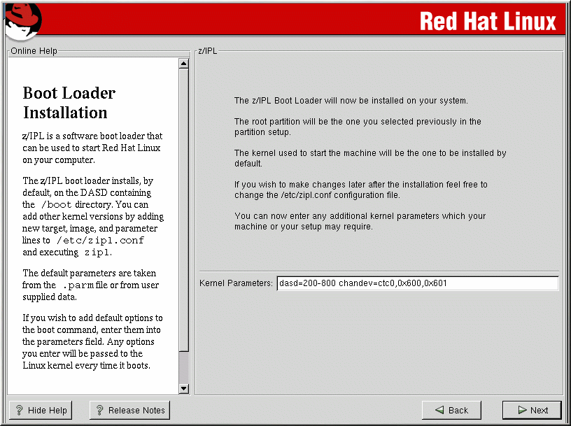 z/IPL is the software boot loader that is used to IPL your installation of Red Hat Linux.