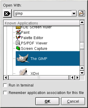 You can also open the image with more advanced image viewers, as well as with the GIMP. Right-click on the image and choose Open With.... A pop-up menu will appear allowing you to open the application you wish to use. To launch the GIMP, choose Graphics and scroll down the list of applications. Click on the GIMP icon and click OK, as seen in Figure 10-5.