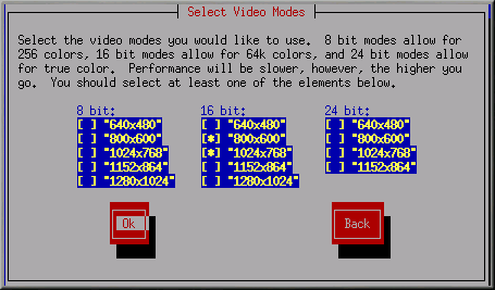 You do not have to probe your video card. If you choose No when asked if you want to accept the settings on the Monitor Probe screen, the next dialog will ask you how much memory is on your video card, then you will be able to select your chosen resolution (see Figure 14-4).