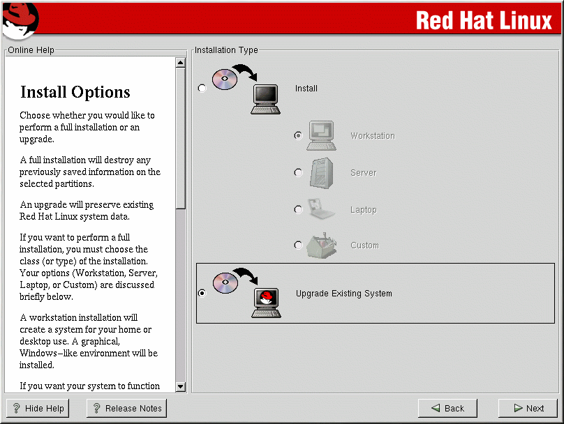 At this point, you should have chosen Upgrade as your preferred installation type (see Figure A-1).