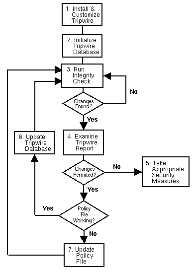 To change the list of files Tripwire monitors or how it treats integrity violations, update the supplied policy file (/etc/tripwire/twpol.txt), regenerate a signed copy (/etc/tripwire/tw.pol), and update the Tripwire database. For more information, see the Section called Updating the Tripwire Policy File.