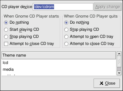 You can edit the track listings for your CDs by clicking the Open track editor button. You can also change the way the utility functions by clicking on the Open Preferences button. Here you can set themes for the player as well as set the behavior of the CD-ROM drive when you open or quit the CD Player application.