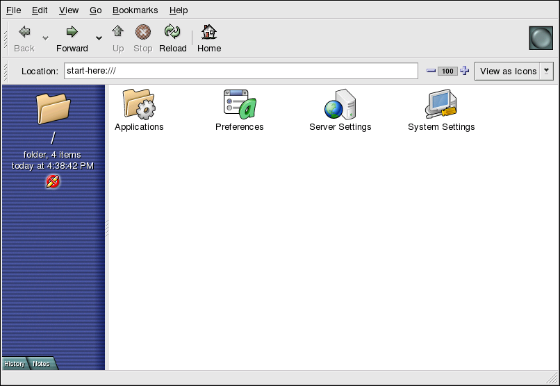 Start Here was designed to hold all of the tools and applications you need to access when using your system. From your favorite applications to system and configuration tools, the Start Here window provides a central location for using and customizing your system.