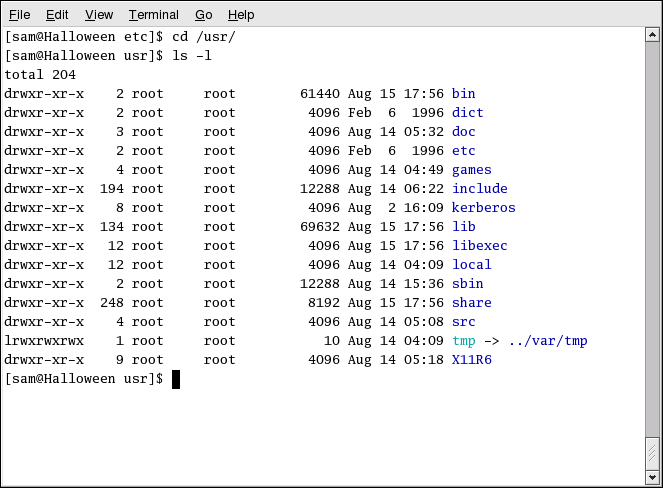 [sam@halloween sam]$cd /root bash: /root: Permission denied [sam@halloween sam]$ |