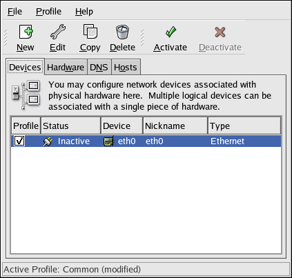 When the device is added, it is not activated immediately, as seen by its Inactive status. To activate the device, select it from the device list, and click the Activate button. If the system is configured to activate the device when the computer starts (the default), this step does not have to be performed again.