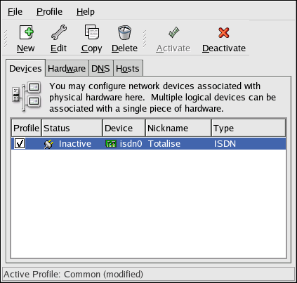 When the device is added, it is not activated immediately, as seen by its Inactive status. To activate the device, select it from the device list, and click the Activate button. If the system is configured to activate the device when the computer starts (the default), this step does not have to be performed again.