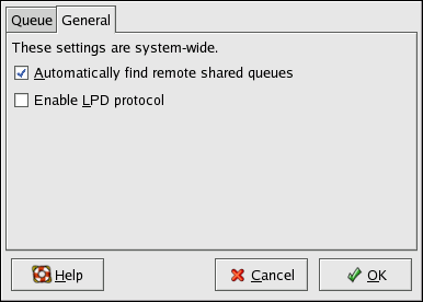 Automatically find remote shared queues — Selected by default, this option enables IPP browsing, which means that when other machines on the network broadcast the queues that they have, the queues are automatically added to the list of printers available to the system; no additional configuration is required for a printer found from IPP browsing. This option does not automatically share the printers configured on the local system.