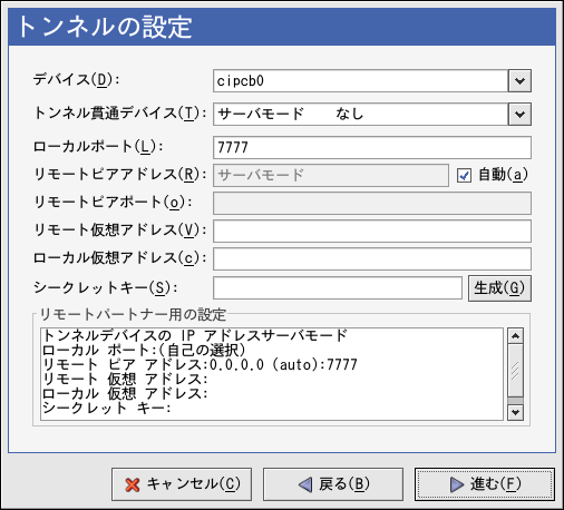 | | CIPE及びCIPEの設定に関する詳細は、Red Hat Linux セキュリティ ガイド