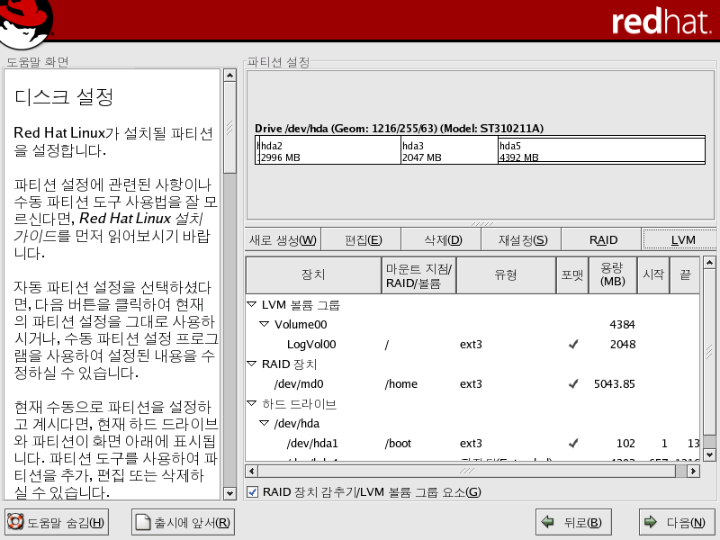 Red Hat LinuxÀÇ ±×·¡ÇÈ ¼³Ä¡ °úÁ¤À̳ª ű½ºÅ¸Æ® ¼³Ä¡ °úÁ¤¿¡¼ LVM ¼³Á¤ÀÌ °¡´ÉÇÕ´Ï´Ù. lvm ÆÐŰÁö¿¡ µé¾îÀÖ´Â À¯Æ¿¸®Æ¼¸¦ »ç¿ëÇÏ¿© LVMÀ» ¼³Á¤ÇÏ½Ç ¼ö ÀÖÁö¸¸, ÀÌ Àå¿¡¼´Â Red Hat Linux ¼³Ä¡ °úÁ¤¿¡¼ Disk Druid¸¦ »ç¿ëÇÏ¿© LVMÀ» ¼³Á¤ÇÏ´Â ¹æ¹ý¿¡ ´ëÇÏ¿© ÁßÁ¡À» µÎ°í ¼³¸íÇØ º¸°Ú½À´Ï´Ù.