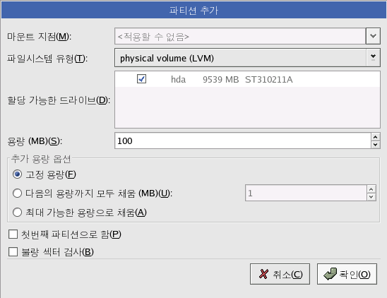 GUI ¼³Ä¡ ¸ðµå¿¡¼¸¸ LVM º¼·ý ±×·ìÀ» ÆíÁýÇÏ½Ç ¼ö ÀÖ½À´Ï´Ù. ÅØ½ºÆ® ¼³Ä¡ ¸ðµå¿¡¼´Â ±âÁ¸ ³í¸® º¼·ý¿¡ ¸¶¿îÆ®ÇÒ ÁöÁ¡À» ºÎ¿©ÇÏ½Ç ¼ö ÀÖ½À´Ï´Ù. |